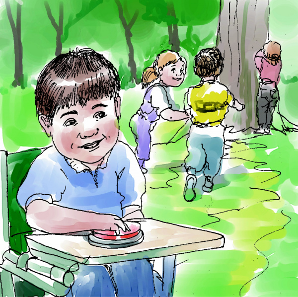 Un comunicatore a singolo messaggio, particolarmente adatto alle prime esperienze con sistemi a uscita in voce.