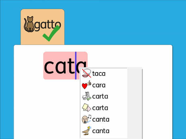 Il sistema linguistico intelligente sviluppato da Widgit permette al software di riconoscere il contenuto del vostro testo e rappresentarlo in simboli. A ogni parola che digitata, il sistema propone diverse alternative di pittogramma e, di conseguenza, di senso.