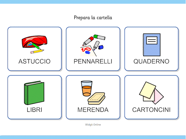 Grazie ai tantissimi modelli a disposizione puoi realizzare facilmente flashcard, etichette adesive, calendari, orari, sequenze, tabelle di comunicazione, grafici, fogli di lavoro, storie, giochi e molto altro senza dover installare programmi sul computer. Lavorare con i modelli di Widgit Online è molto semplice. Non devi neppure pensare all'organizzazione dei contenuti sulla pagina: apri il template già pronto e inserisci o incolla il testo.