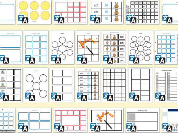 Tra i modelli disponibili in doppia lingua puoi trovare: Flashcard, Griglie, Fogli vocabolario, Etichette, Calendari, Mappe concettuali, Supporti per la CAA, Modelli per quaderni di comunicazione.